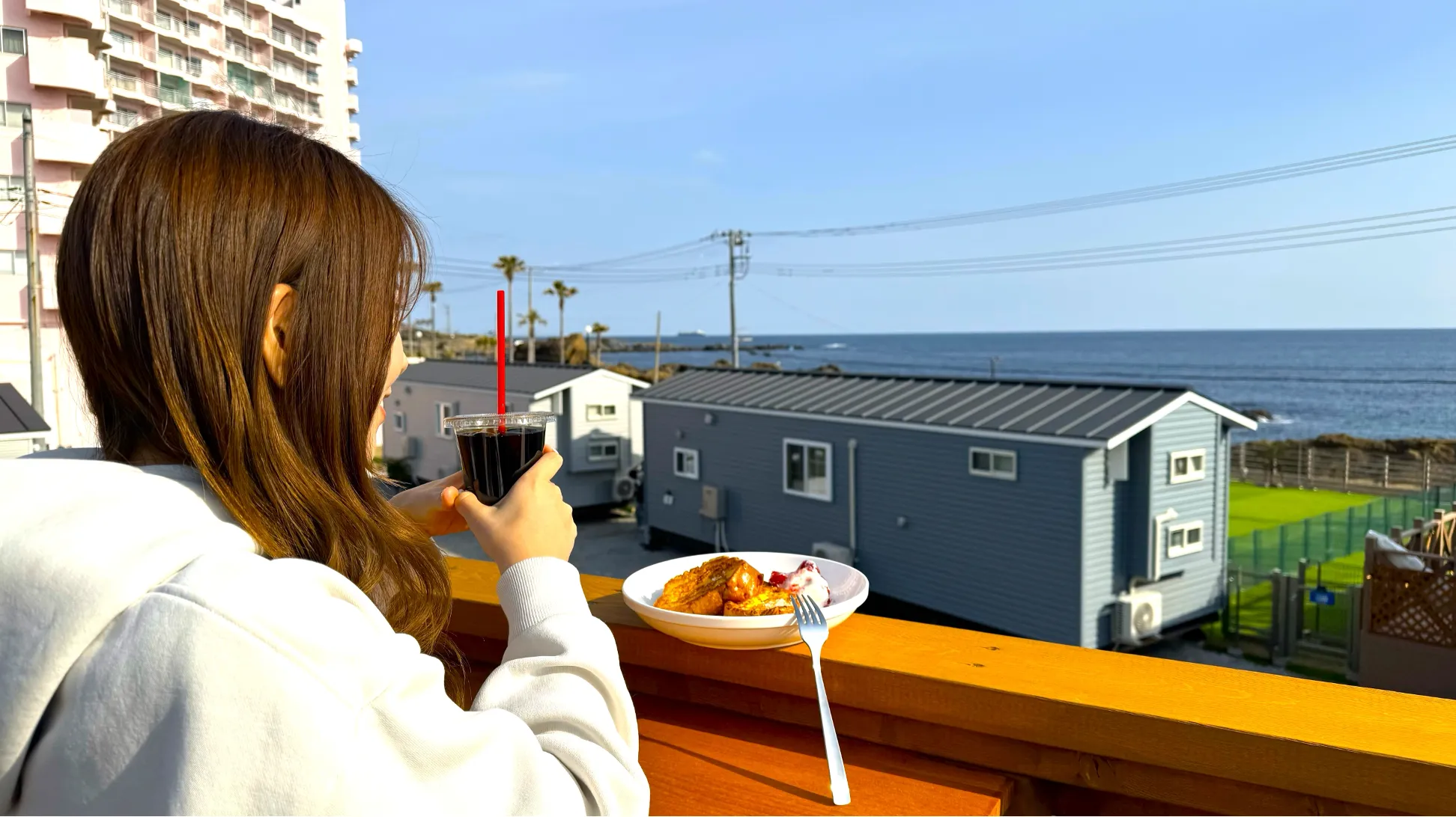 全棟オーシャンビューのトレーラーハウスからは、穏やかな波音と共に朝日や夕暮れの美しい景色を望むことができます。